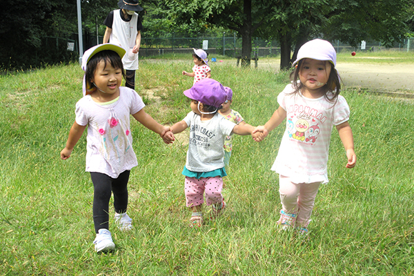 樹保育所では、毎朝名前を呼ばれて大きな「はーい」のお返事でスタートします。体操、設定保育の後、たっぷり歩いて公園で体を動かします。 一日の流れの中でできることが目に見えて増えていくのが、0・1・2歳児です。イヤイヤ期もはさみながら、保育士とのやりとりで良いこと・悪いことをしっかりと覚えていきます。 異年齢保育の中で上の子が下の子を思いやり、下の子は上の子の真似をして成長してきます。悔しい思いもしながら、自分で考えることを知り、たくましく育ちます。出来たことを先生に認めてもらい、褒めてもらったことで自己肯定感を得て、他のお友だちにも優しくなります。これこそ「生きる力」であり、一人ひとりの次のステップである3歳児保育につなげる自信になっていくと思います。今後も子ども一人ひとりの心に寄り添い保護者の方と一緒にお子様の成長を見守りたいと思います。