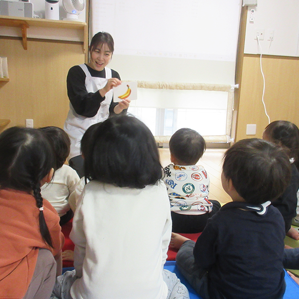 単語カードや英語の歌、手遊びを通して英語を楽しく学びます。